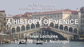 It was the worst of times and the most inauspicious of beginnings. Forced into the swamps and marshes by repeated waves of Germans, Huns, and rapacious imperial troops, the refugees from the Italian mainland found safety “living like sea birds” on the islands and sandbars of an inhospitable lagoon. But gradually these dispersed marsh dwellers coalesced into a viable community that not only defended itself against seemingly impossible odds, but ventured out onto the high seas to create a maritime empire that spanned the Mediterranean. For centuries Venice’s wealth, power, and political stability were so unshakeable that Europeans enviously referred to the republic simply as La Serenissima, the Most Serene. In this course we will trace Venice’s history from the flight to the lagoon, through her centuries of glory, to her decline and demise at the hands of Napoleon, then the Austrians, and finally to her absorption into the new Italian state.